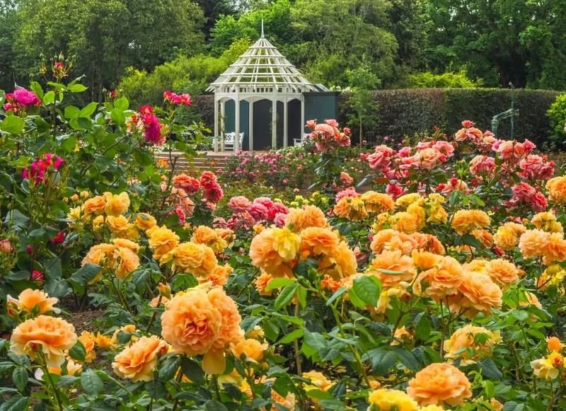 An archway covered in flowers feels straight out of a fairy-tale. Use climbing roses, wisteria, or clematis to adorn a garden arch that frames your flower bed or pathway. At the base, plant colorful ground flowers like pansies, marigolds, or daisies to complement the arch’s grandeur. The combination creates a magical entrance that feels like walking into a storybook world. This design is both functional and enchanting, offering a dreamy centerpiece for any garden.