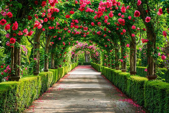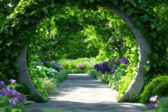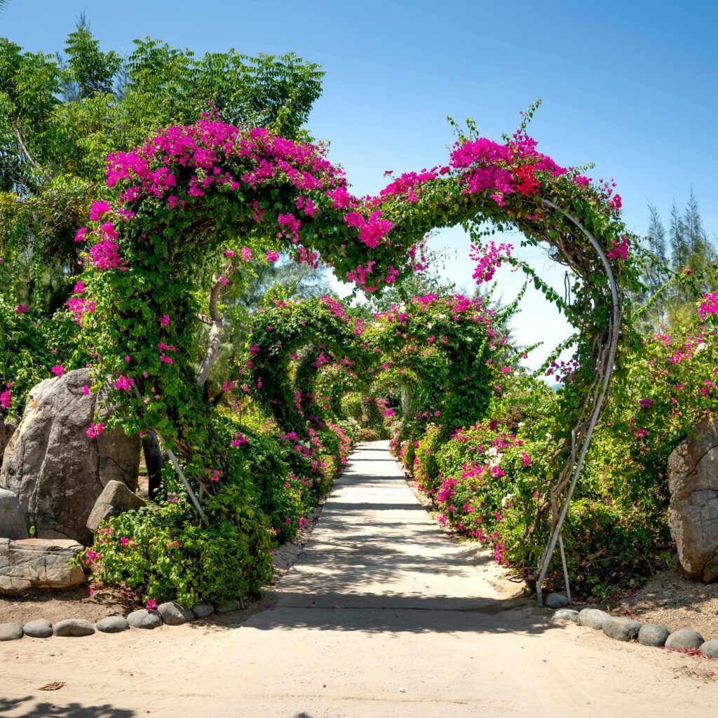 An archway covered in flowers feels straight out of a fairy-tale. Use climbing roses, wisteria, or clematis to adorn a garden arch that frames your flower bed or pathway. At the base, plant colorful ground flowers like pansies, marigolds, or daisies to complement the arch’s grandeur. The combination creates a magical entrance that feels like walking into a storybook world. This design is both functional and enchanting, offering a dreamy centerpiece for any garden.