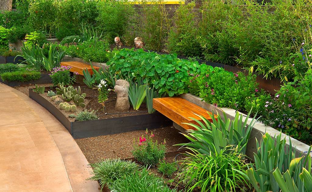 For a truly playful design, create a flower bed that doubles as a miniature fairy village. Use small flowers like alyssum, violas, or dwarf marigolds, and add tiny fairy houses, mushroom ornaments, and pebble paths. Incorporating moss and miniature furniture completes the magical setting, making it a delightful attraction for children and adults alike. This flower bed transforms your garden into a whimsical wonderland where imagination thrives.